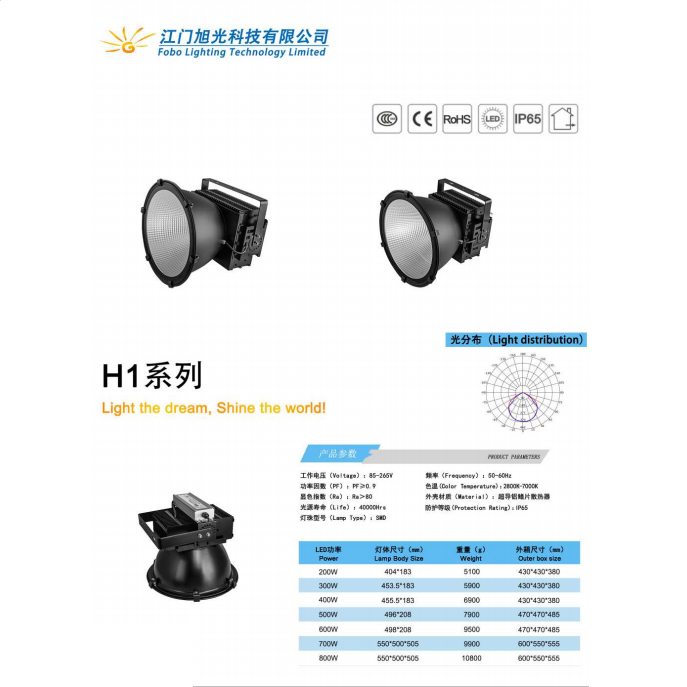 • 产品型号: 户外高光IP65防水H1系列LED投光灯
