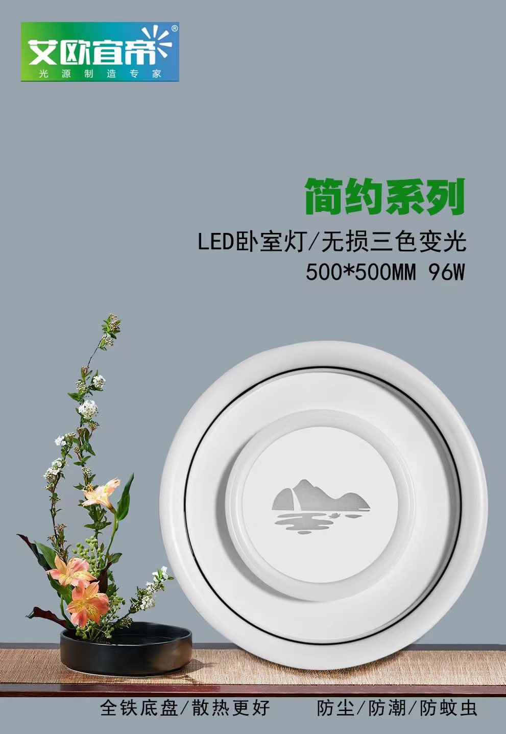 灯饰 灯饰产品 简约系列无损三色变光三防LED吸顶灯