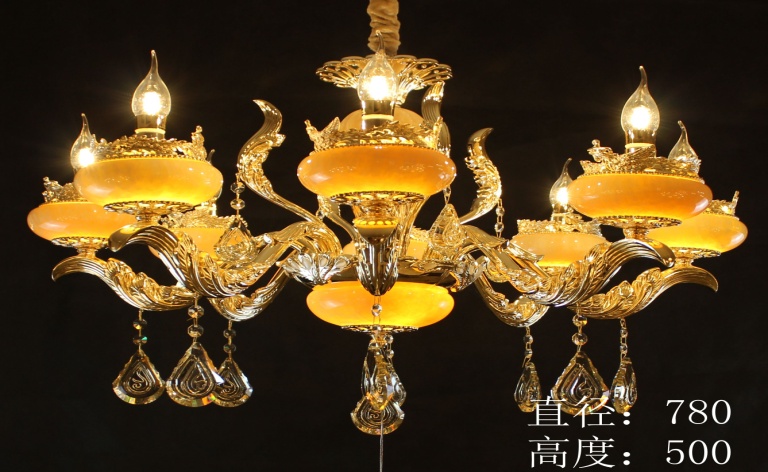 详细描述:黄龙玉水晶灯采用的是纯天然黄龙玉,灯臂经过多层打磨,抛光,和电镀而成,水晶采用的是最顶级的哦。