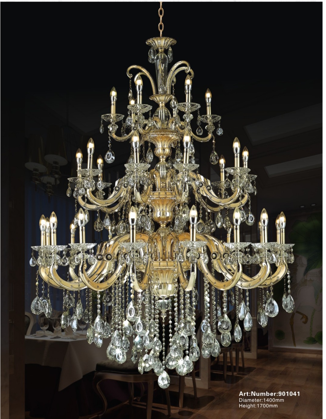 展品名称 水晶灯展品品牌 优莱克展品型号 901041技术规格说明 直径 1400mm 高 1700mm 详细描述 全铜