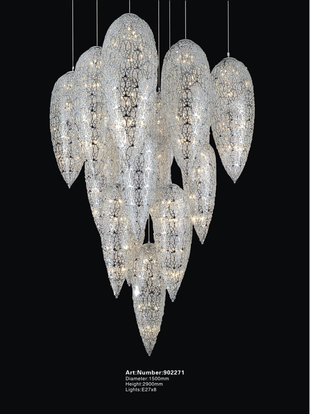 展品名称 吊灯展品品牌 优莱克展品型号 902271技术规格说明 直径 1000mm 高 780mm详细描述 欧式 lights:E27*8