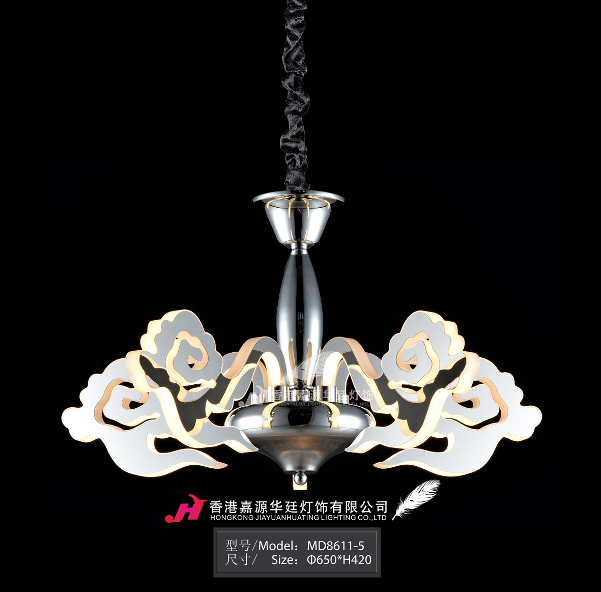 展品名称:吊灯展品品牌:香港嘉源华廷灯饰展品型号:MD8611-5