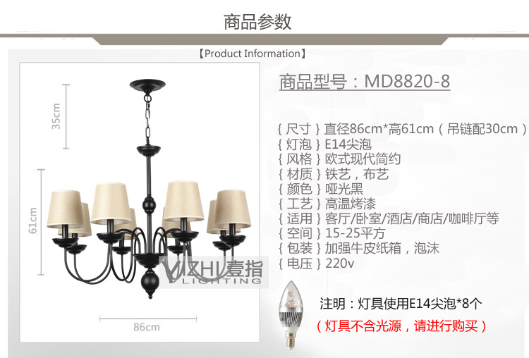展品名称:吊灯展品品牌:壹指灯饰展品型号:MD8820-8
