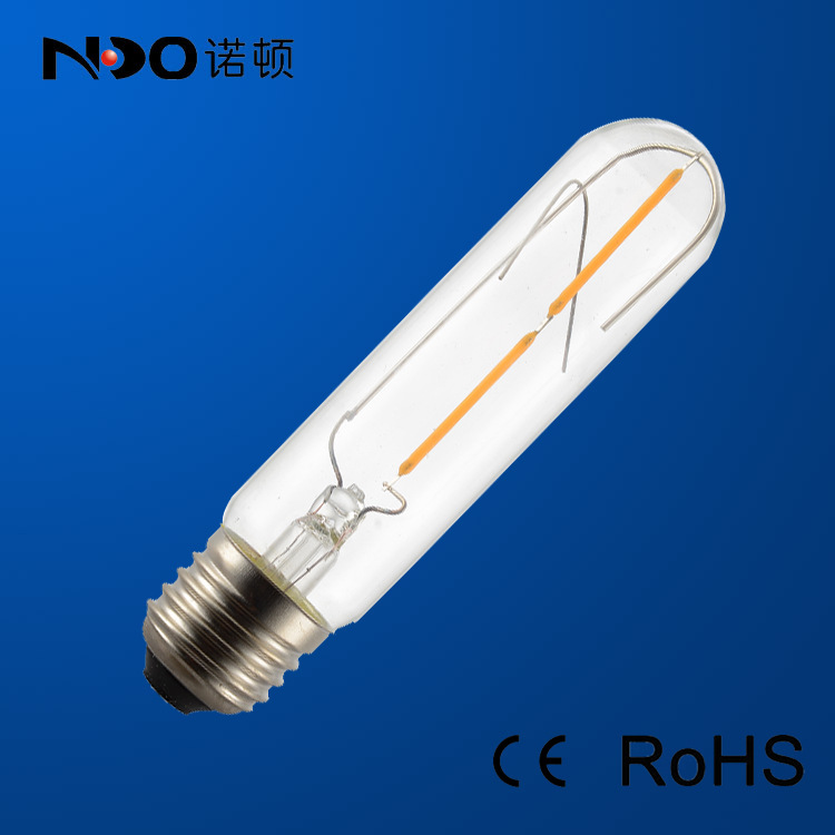 展品名称:2W节能环保椭圆形LED灯丝灯展品品牌:诺顿展品型号:T30-2W-E27输入电压:220(V) LED灯珠型号:灯丝 LED灯珠颗数:28(颗)光通量:180(lm) 光束角:360(度) 显色指数:80