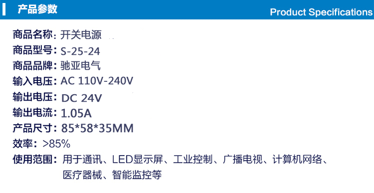 • 产品型号: 24V1A开关电源24V25W电源24V1A变压器220V转24V1AS-25-24小体积