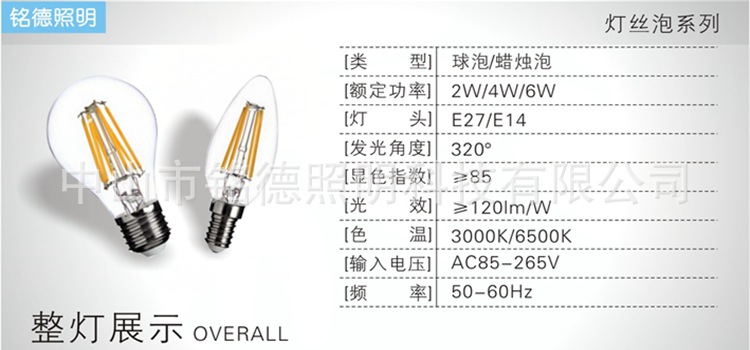 • 产品名称: LED灯丝灯