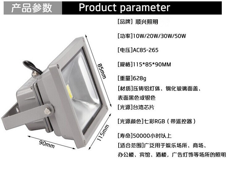 • 产品型号: rgb投光灯七彩遥控器泛光灯户外led投射灯10W 20 W30W 50W 100W