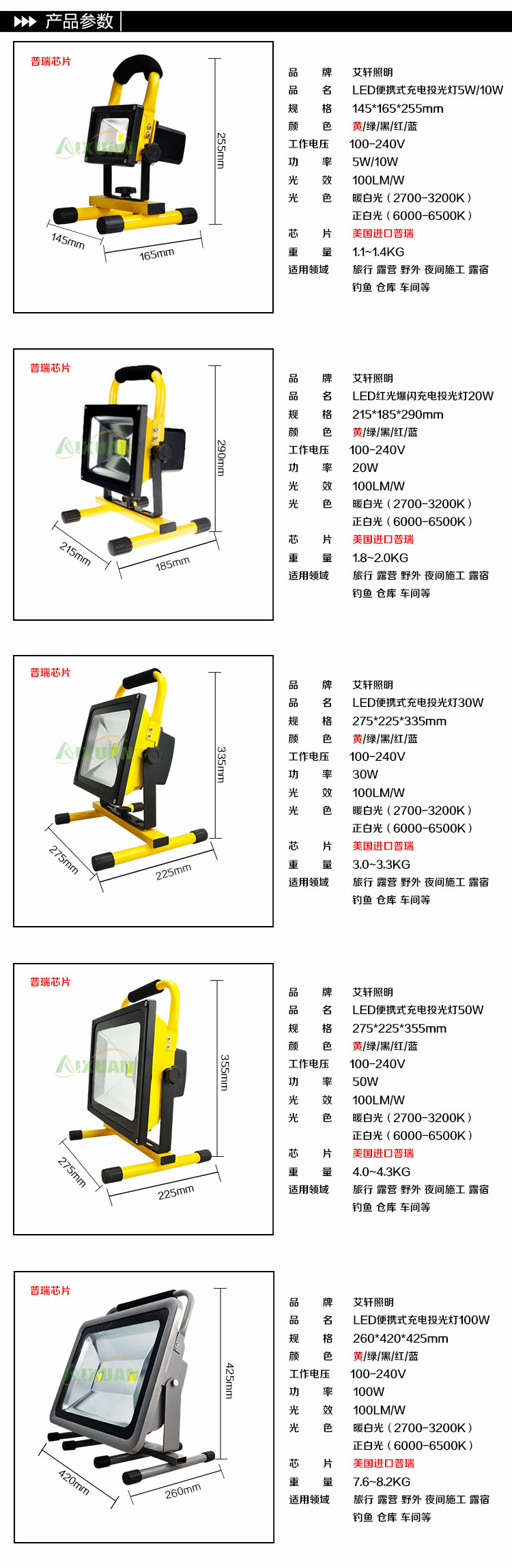 • 产品型号: 5-50w便携式充电投光灯 野外露营LED充电投光灯 led手提投光灯