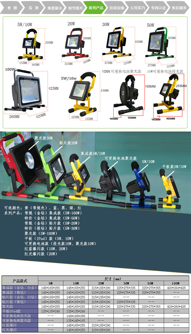 • 产品型号: 5W10W超薄led充电投光灯 手提灯 工作灯 野营充电应急灯