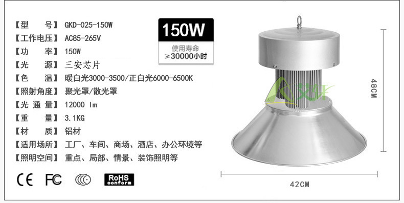 • 产品型号: 150W工矿灯 led工厂灯 仓库灯 厂房照明 高棚灯 车间灯