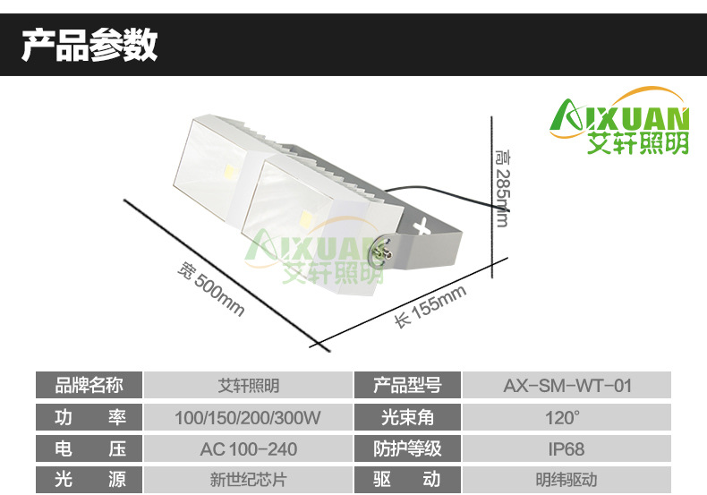 • 产品型号: 50W100W150W200W300W 投光灯 隧道灯 路灯