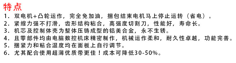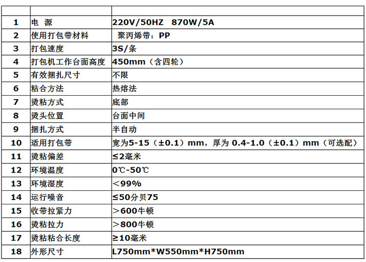 • 产品名称: PP带打包机 双电机省电半自动高台打包机