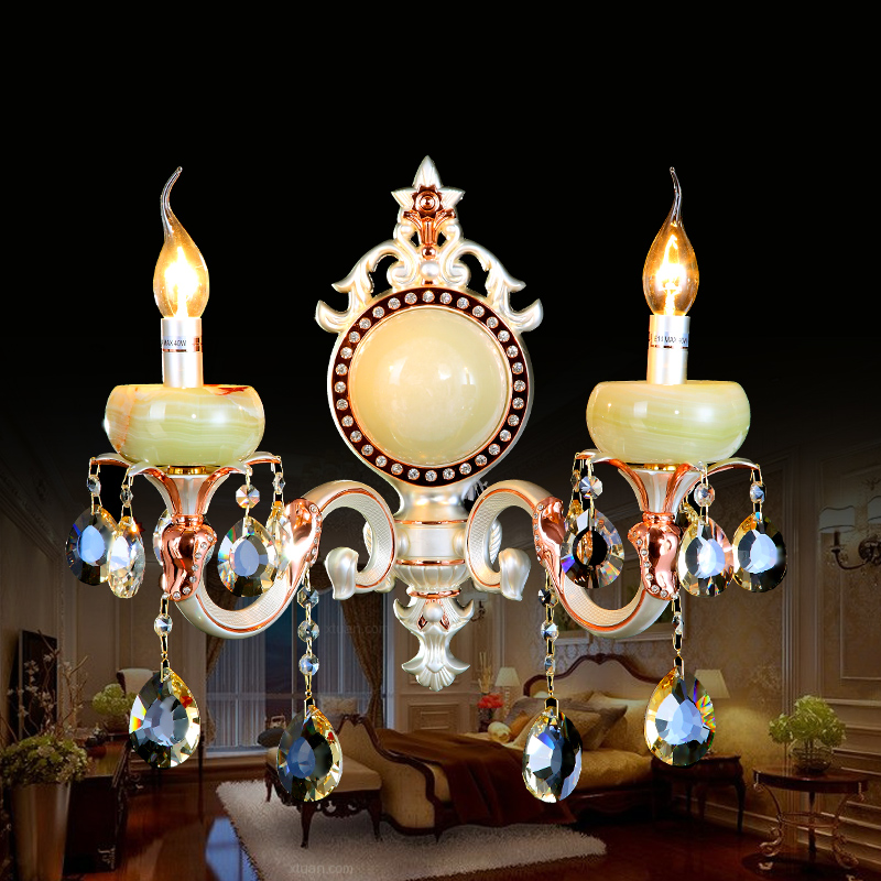 展品名称:欧式宫廷水晶蜡烛玄关过道壁灯展品品牌:尊阁展品型号:065-2灯体尺寸:直径35cm 高40cm适用面积:5-10平米适用层高:3M