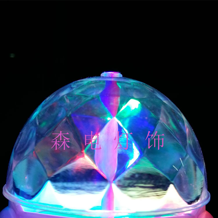 展品名称:LED水晶七彩旋转迷你小魔球舞台娱乐场所气氛舞台灯展品品牌:森电展品型号:sen-020电 压:AC85-240V电 源:E27 B22光 源:RGB 3*0.5W灯珠颜 色:红绿蓝材 质:pc+塑料模 式:旋转自走配 件:主机+包装产 品:8*15cm尺 寸:外箱:42*42*34cm 内箱:8*8*16.5cm装箱数:50pcs/件可选颜色:白