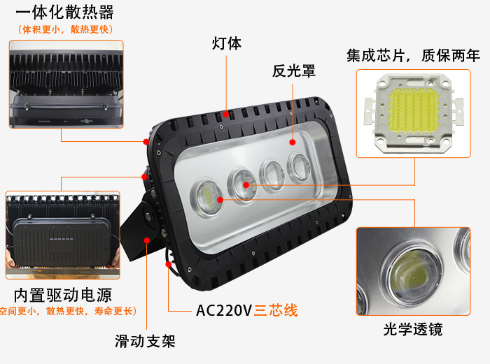 展品名称:防水大功率led投射户外照明贴片压铸铝隧道灯展品品牌:DONTA展品型号:黑色投光灯200W规格:100W 长425mm,高325mm 120W 长455mm,高315mm 150W 长455mm,高315mm 200W 长560mm,高310mm输入电压:220(V)安装防水:悬挂式安装光通量:14000(LM) 外壳材质:压铸铝 发光角度:120(度)