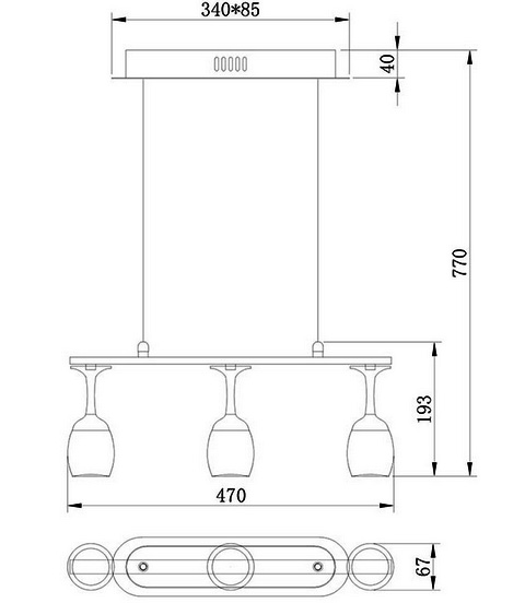 展品名称:个性独特餐台吊灯餐厅三个酒杯吊灯展品品牌:柳一展品型号:L-CD-89尺寸:L.470*W.67*H.770MM材料:塑胶+铝+钢颜色:白/黑/红/金色温:3000~6000K
