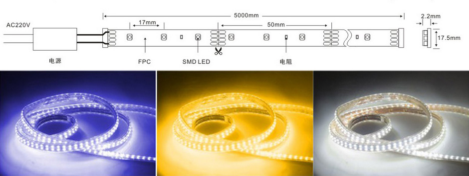 展品名称:高品质耐用节能环保贴片软灯带展品品牌:光美时代展品型号:5730-120P尺寸:12*17.5*7灯珠数:120导线:铜线包装规格:100米/卷、50米/卷单粒流明:30-35LM功率:16-18W/M产品特点:环保节能,持久耐用 ,高品质, pvc材料,外看光滑软,发光晶莹无杂质 ,加宽线路板,使用寿命更长 导电性能好,柔韧性好,耐高温,不易折断