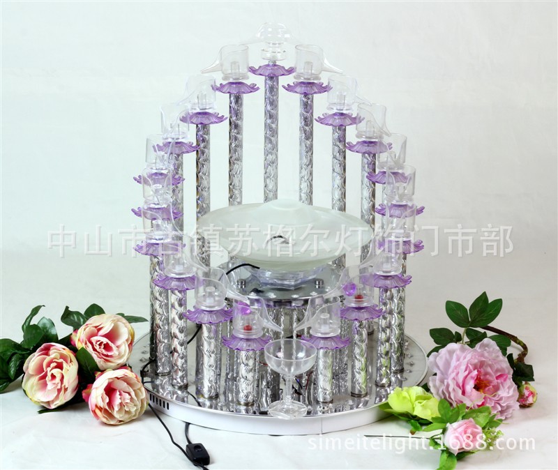 展品名称:雾化器香槟塔含杯子婚庆道具香槟塔展品品牌:苏格尔展品型号:雾化器香槟塔材质:不锈钢、铁艺尺寸:64*42*46光源;三色