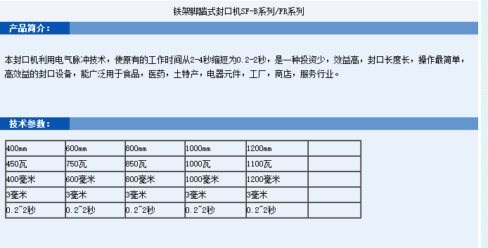 • 宝石兴电气脉冲技术 铁架脚踏式封口机SF-B系列/FR系列