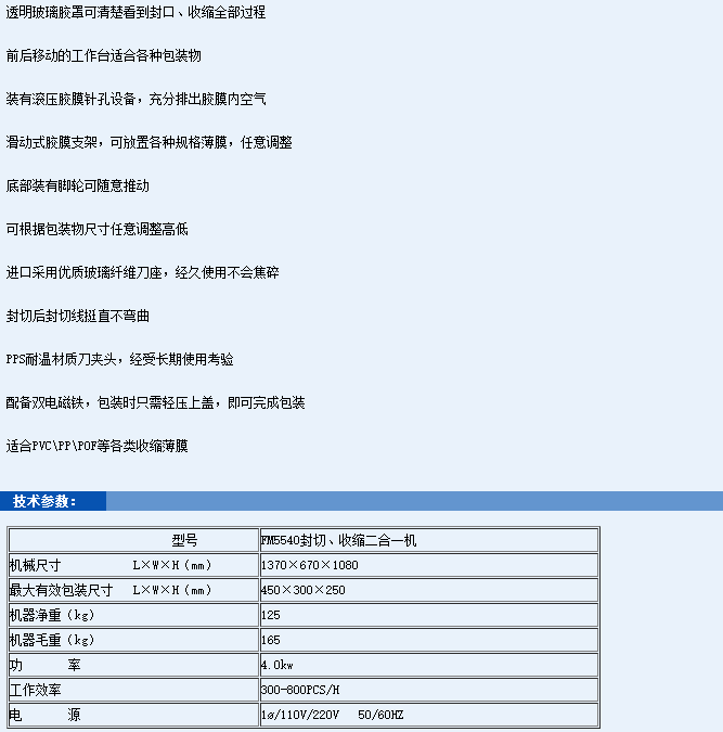• 产品名称: 宝石兴优质纤维刀座 FM5540二合一封口收缩机