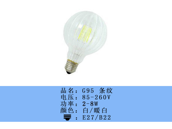 灯饰 灯饰产品 佳兴 2-8W 白/暖白 G95 条纹LED灯丝灯