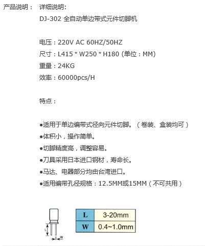 • 产品名称: 东炬电容切脚机-DJ-302 全自动单边带式元件切脚机