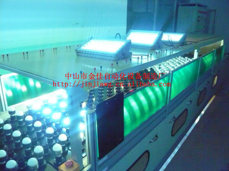 挡光护罩:在线体面上两侧各设7段挡光护罩,采用茶色有机玻璃板与铝合金组合而成。有效的衰减节能灯的光线,更好的保护眼睛。