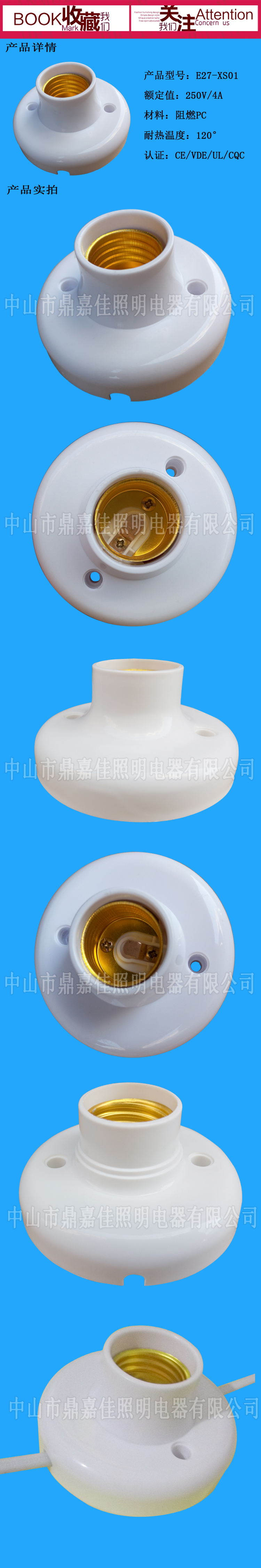 E27大底盘螺口灯座 E27加厚阻燃平口灯座
