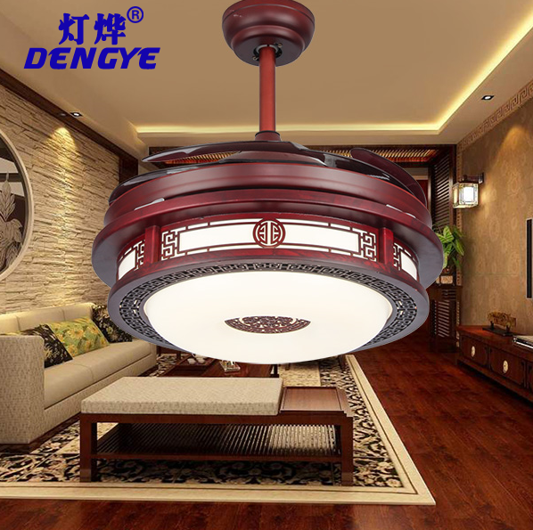 • 灯饰 灯饰产品 中式红木智能变频正反转隐形风扇灯
