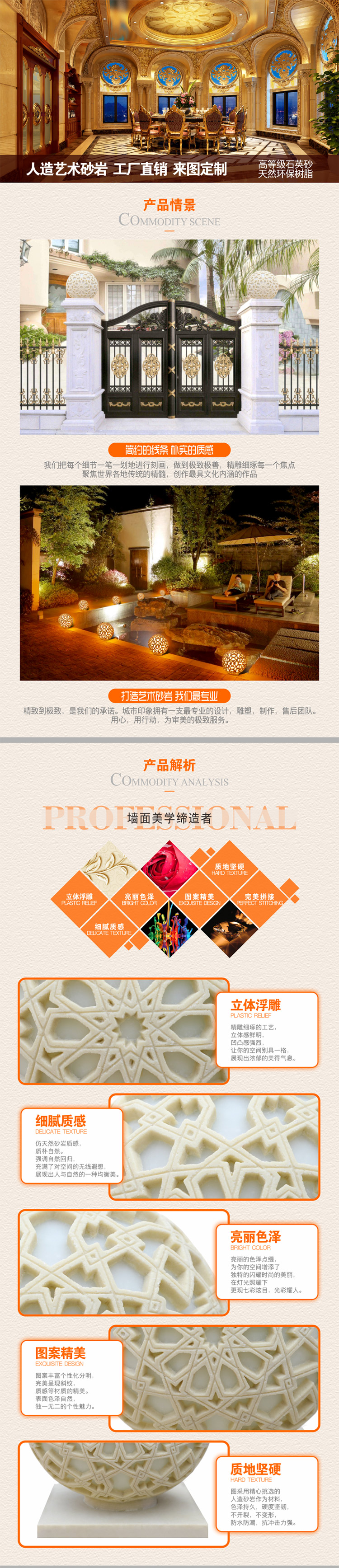 • 产品名称: 砂岩欧式浮雕圆形球灯园林装饰灯