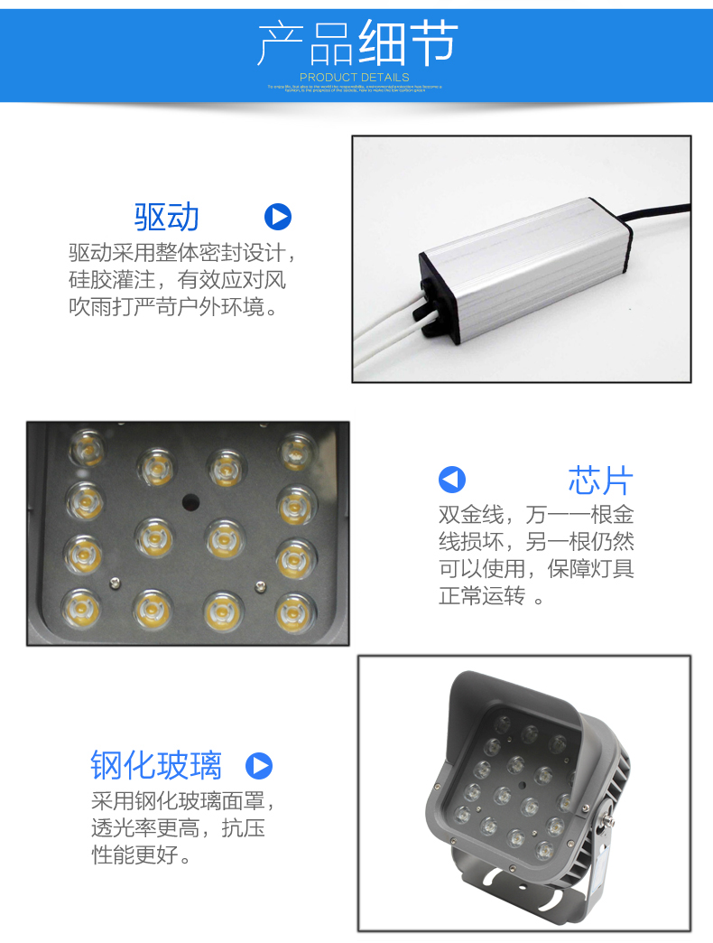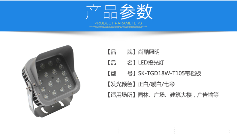 灯饰 灯饰产品 led投光灯户外防水招牌庭院路灯室外射灯18W大功率投射灯照明