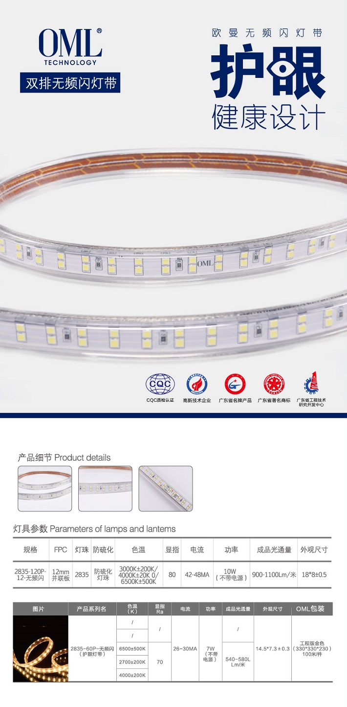 • 产品名称: 欧曼双排无频闪灯带