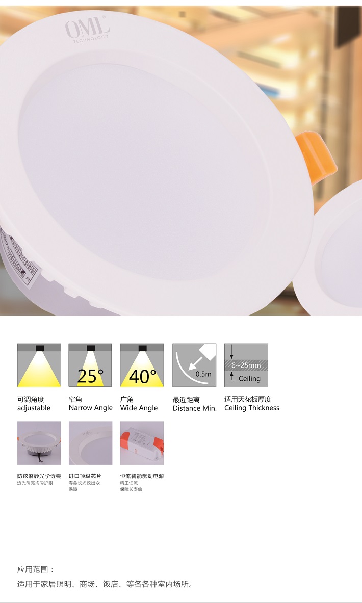 • 产品应用: 家居照明、商场、饭店等各种室内场所照明。