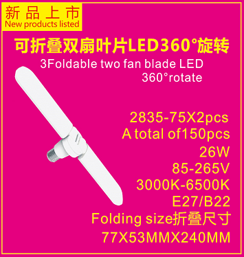 可折叠双扇叶片LED360度旋转