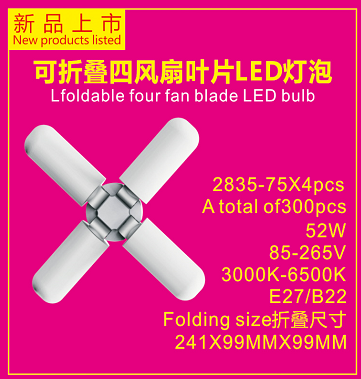 可折叠四风扇叶片LED灯牌