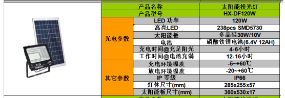 • 产品名称: HX-DF120W 太阳能投光灯