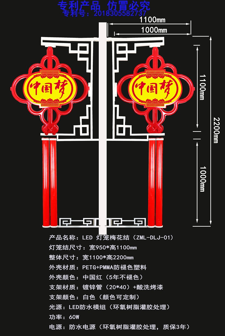 • 产品名称: LED灯笼梅花结(中国梦)