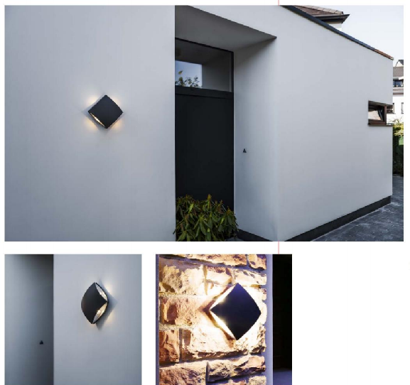• 产品名称: 正菱形黑色四边发光户外壁灯
