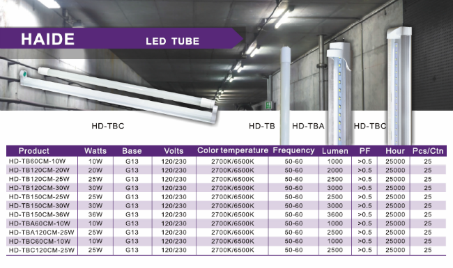 • 产品型号: 海德多款式多瓦数LED灯管系列