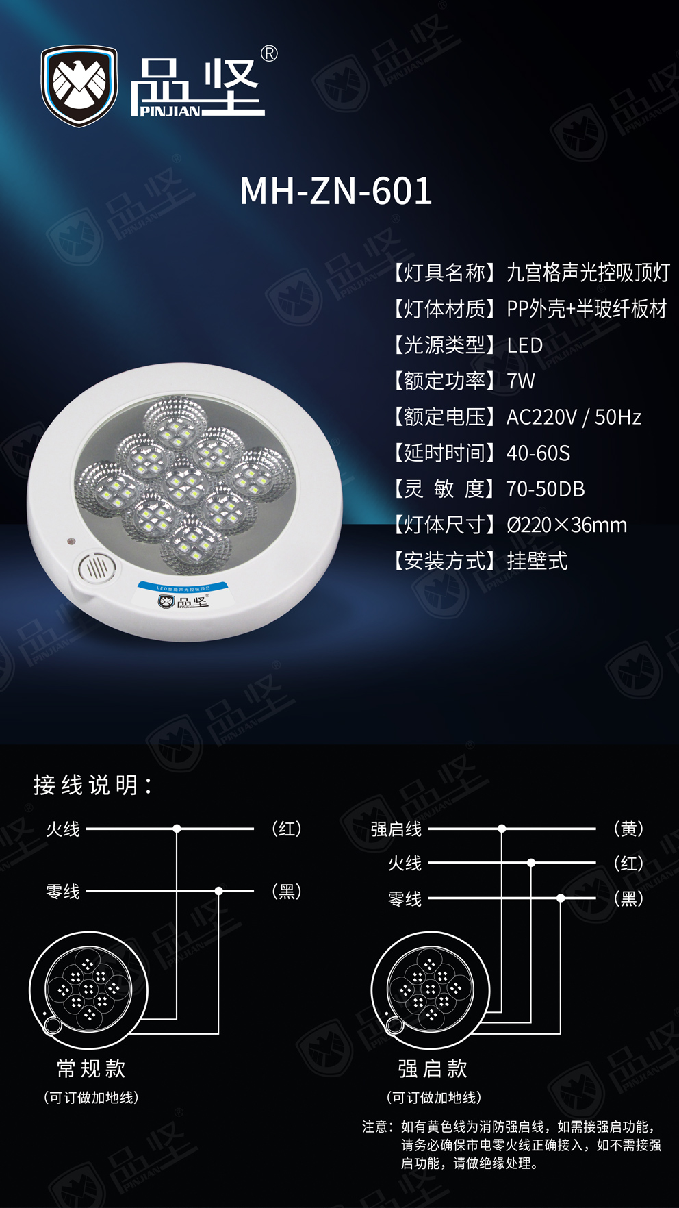• 产品名称: 品坚声控九宫格吸顶灯
