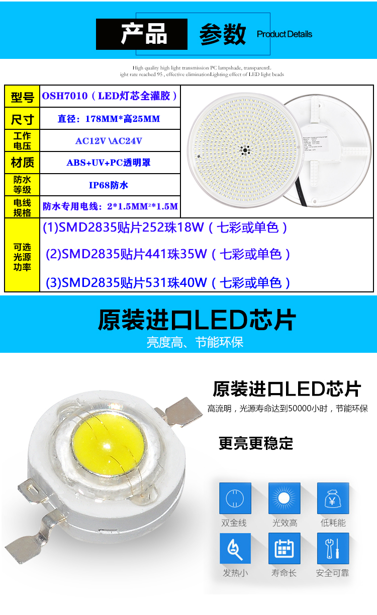 • 产品名称: OSH7010灯芯全灌胶