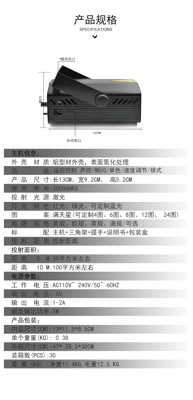 • 产品型号: 遥控迷你激光灯XL-C09