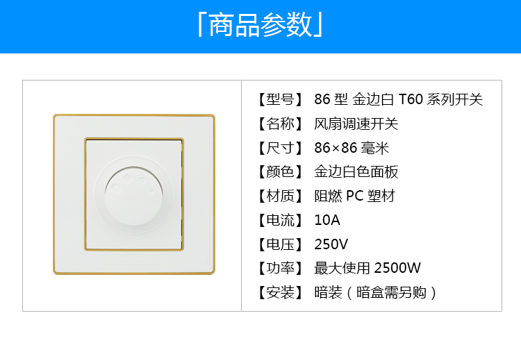 • 产品名称: T60调速_02 风扇调速开关