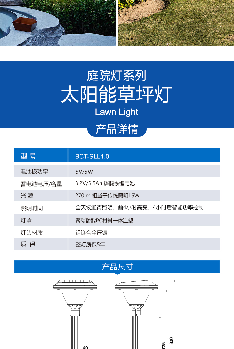 • 产品名称: 户外别墅花园太阳能防水草坪灯