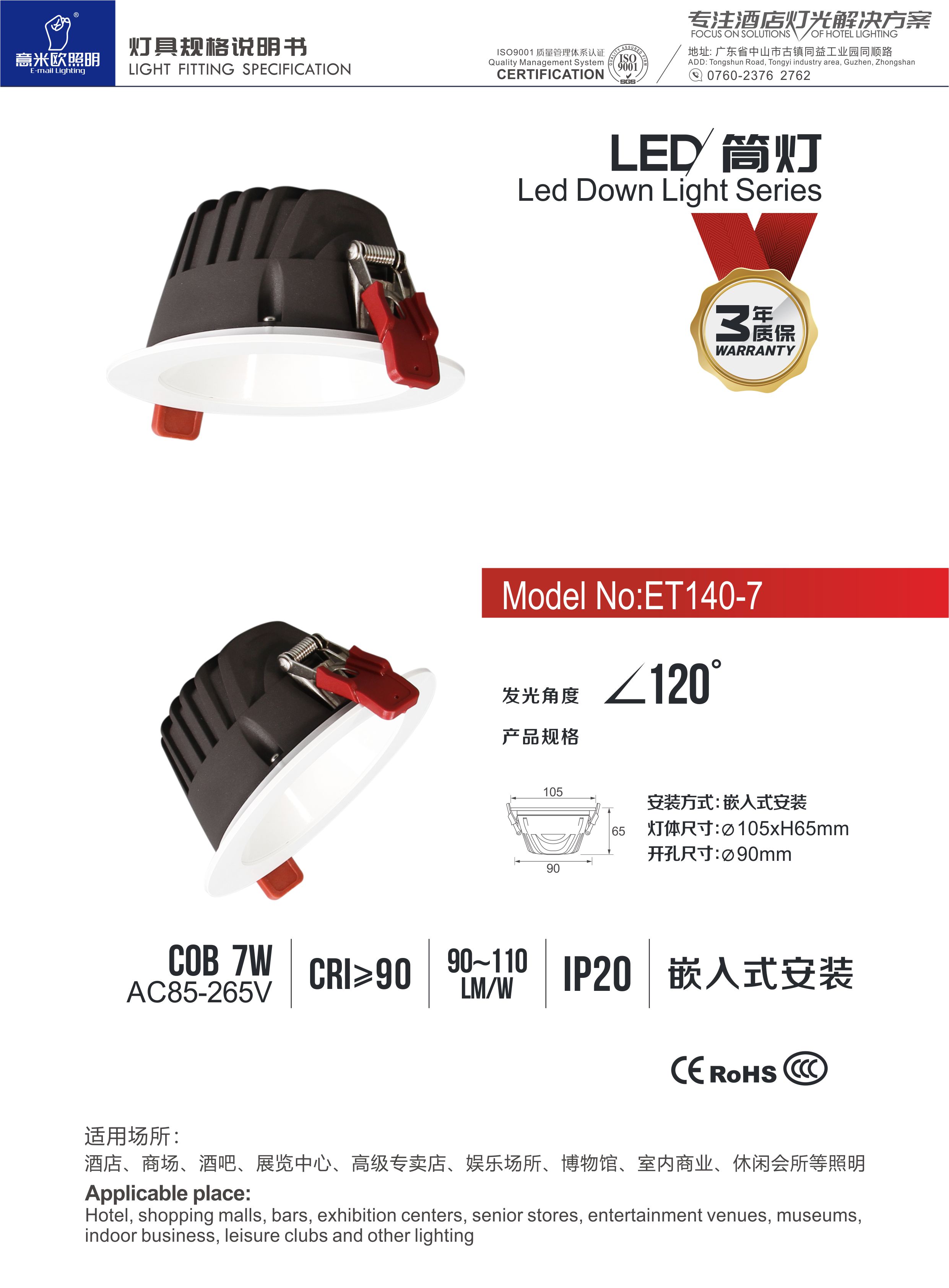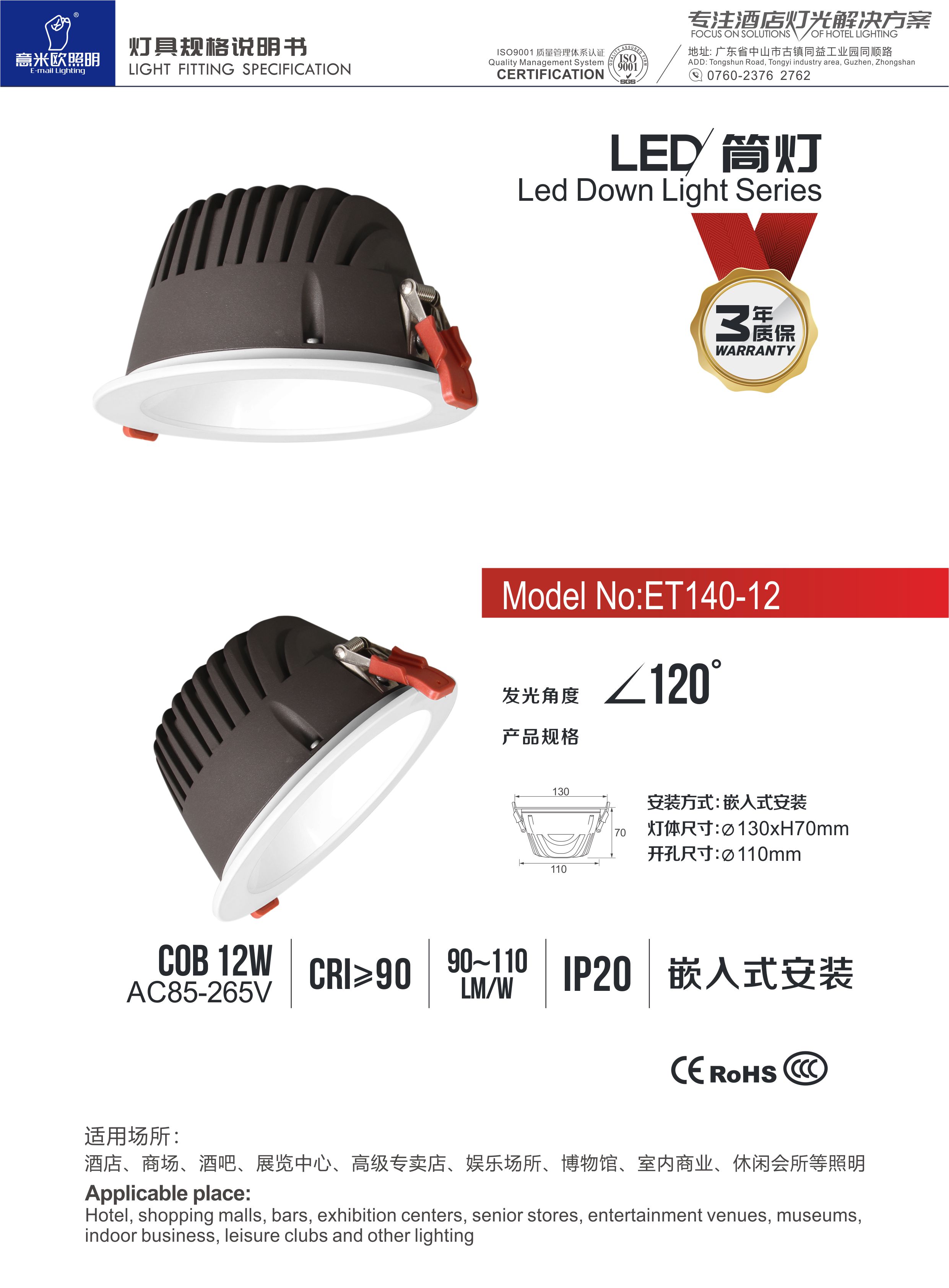 • 技术说明: 意米欧深防眩筒灯,专注高档品质,星级酒店专供!纯正光色,媲美自然光,多种光色可选,色温是照明光学中用于定义灯光色彩的一种物理量,2700K琥珀光、3000K暧光、3500K玥白光、4000K中性光、5000K自然光、6000K白光,根据环境所需,合理选用不同色温的灯光,媲美光色,营造温馨氛围场景! 加厚型精工铝材散热器,精选优质铝材,多道严格工序打造成型,经过抗氧化处理,耐腐蚀、防脱漆,符合空气流动学原理,工作效率高,散热快。高效散热搭配智能恒流电源,保证产品安全。 正品COB芯片,精准光学,光更柔和美的光学,保证亮度正宗,照明时间长,光衰小。 弹簧式安装,更安全,安装更加便捷,弹力强,稳固牢靠,不易松动