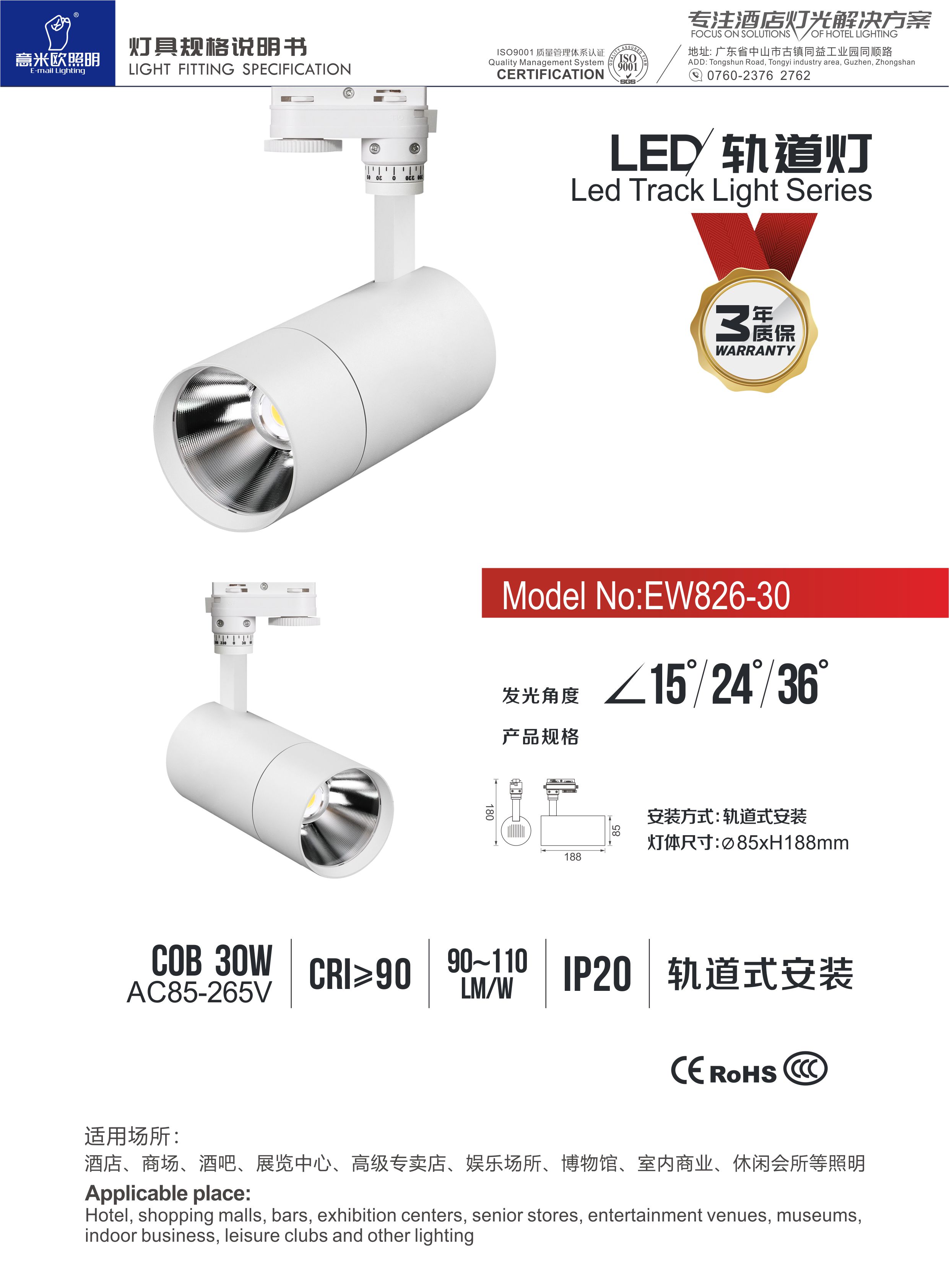 • 灯饰 灯饰产品 意米欧EW826型号简约轨道灯
