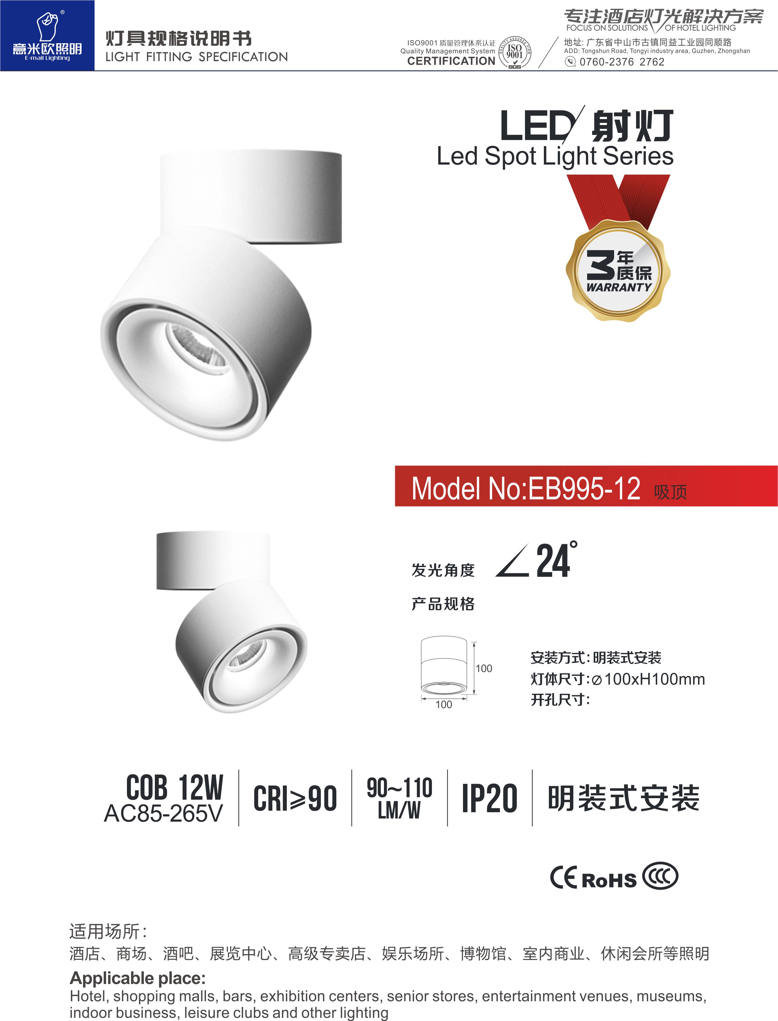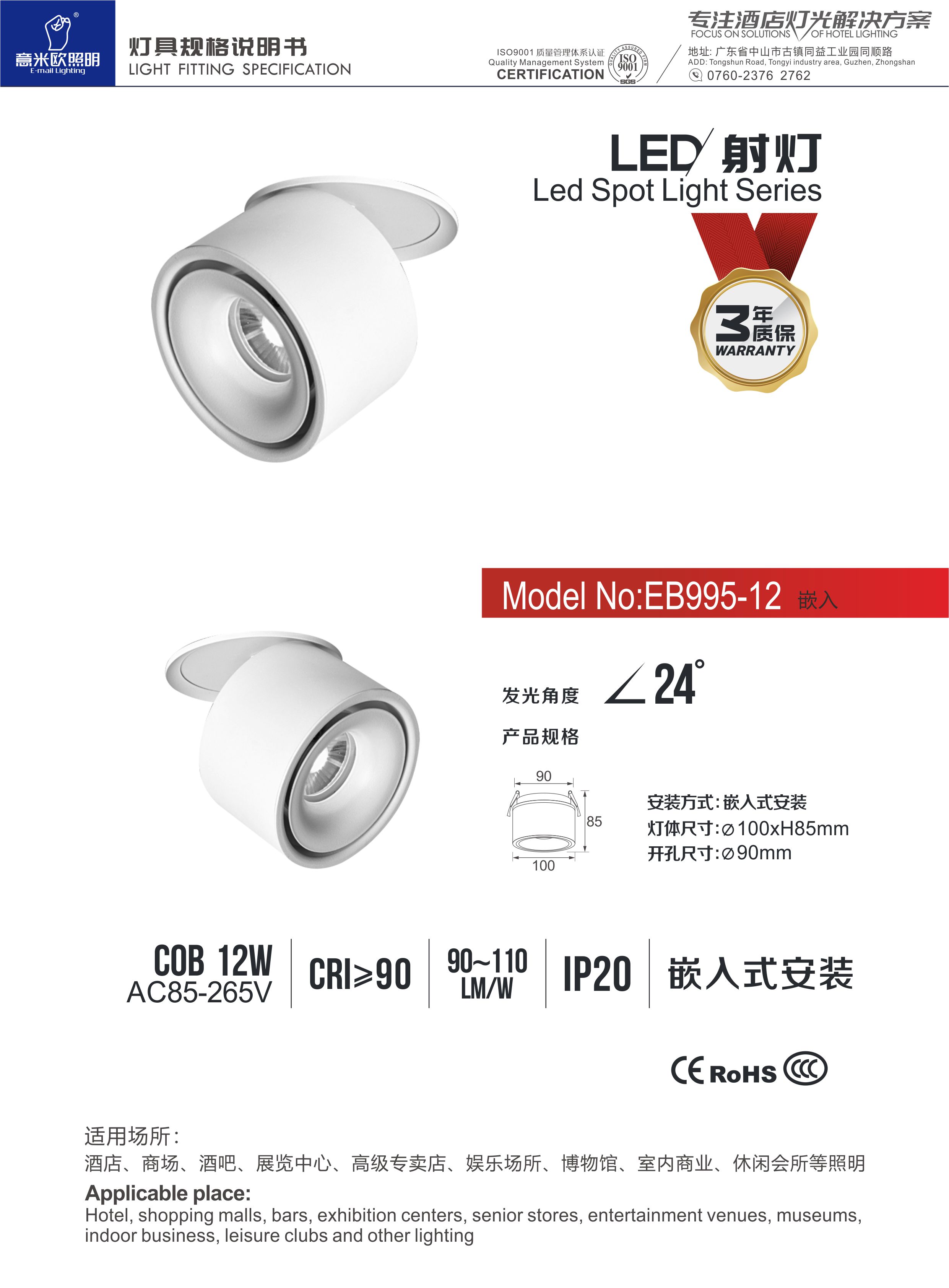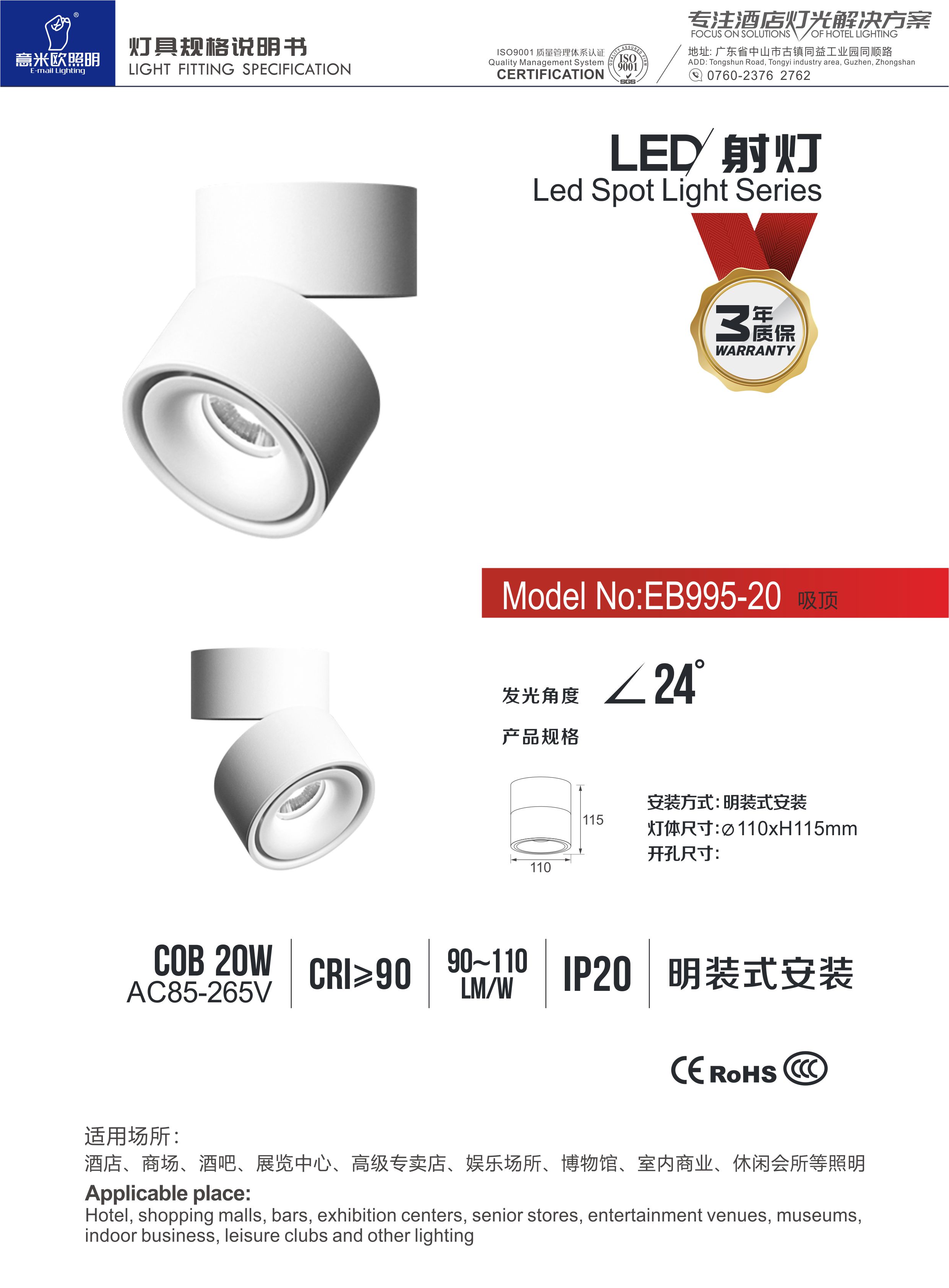 • 意米欧EB995型号简约白色筒灯