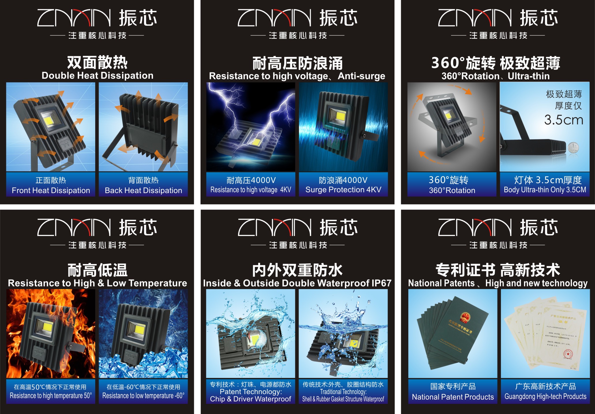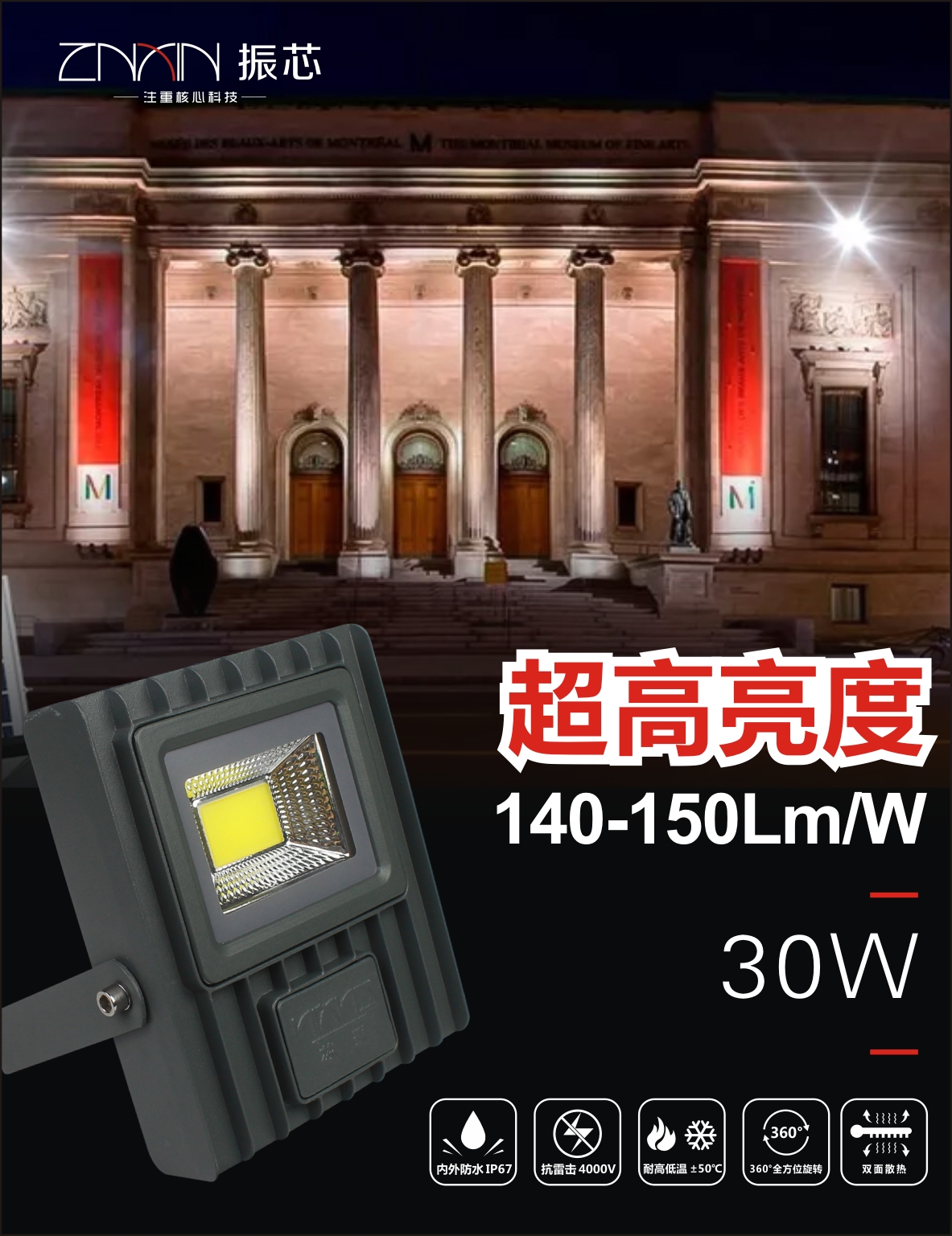 30W LED 投光灯 泛光灯 高亮 防水产品参数功率 10W 20W led 投光灯输入电压:160-265V、85-300VPF>0.5、0.9耐高压 抗浪涌 4000V灯珠电源防水IP67耐高低温 -50~+50℃led 光源: COB 台湾晶元光效:140-150lm/w质保3年产品特点