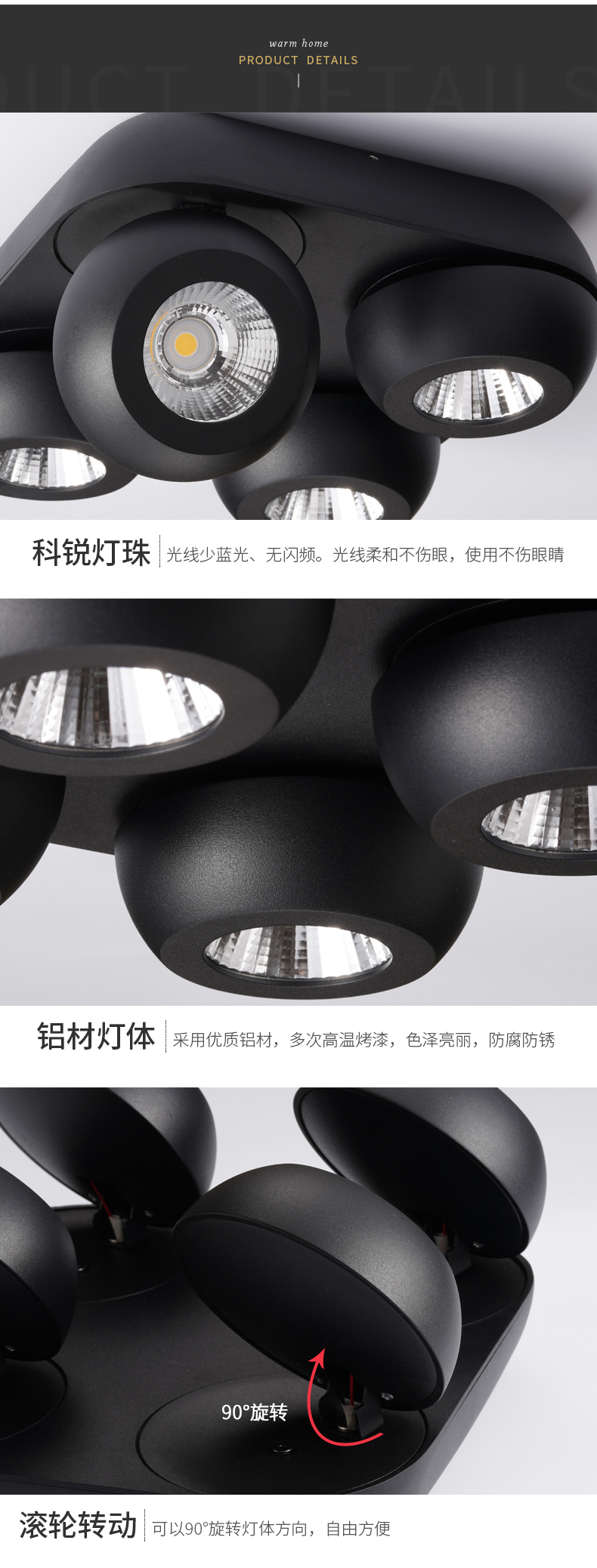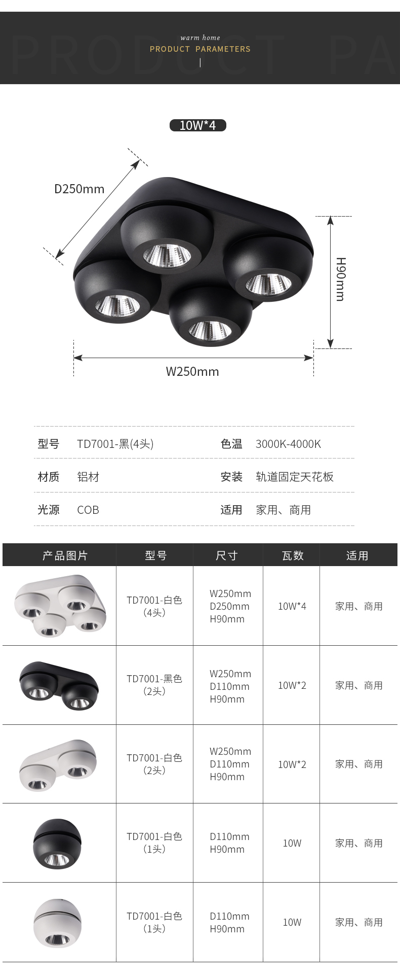 • 产品应用: 箭牌照明多头COB明装射灯7001