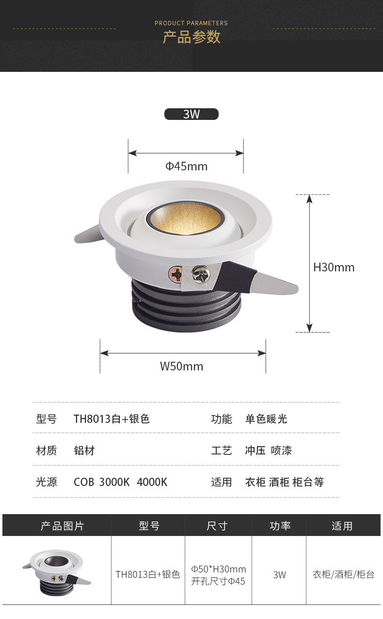 • 产品应用: 小开孔尺寸射灯8013